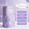Handheld Backpack Pencil Case Cute Cartoon Dirt Resistant Canvas Three-layer Large Capacity Stationery Bag Storage Bag