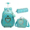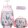 Children's Rolling Backpack Set Wheeled Schoolbag Kids Backpack with Insulated Lunch Bag and Pencil Case for Boys and Girls Bags
