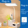 Touch LED desk lamp provides focused illumination and convenient storage, enhancing your workspace or bedside table.