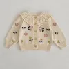 Newborn Baby Girls Knitting Cardigan Flower Embroidery Long Sleeve Cardigan Coat Spring Autumn Toddler Baby Girls Sweater Coat