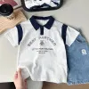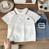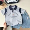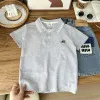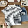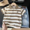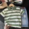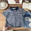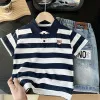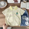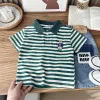 2025 Summer Children Boys Tees Casual Short Sleeve Stripe Cotton Thin Kids Boys T-shirts Embroidery Bear 3-8 Years Boys Tops