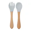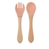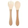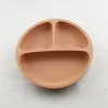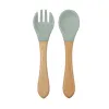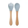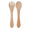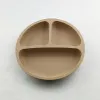 Baby Silicone Feeding Dishes Children Suction Plate Suction Sucker Bowl Wood Fork Spoon Set Toddler Training Tableware BPA Free