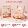 Robotime Robud Wooden Baby Walker Baby Push Walker with Activity Center and Storage Montessori Walker Toy for Boys Girls Pink